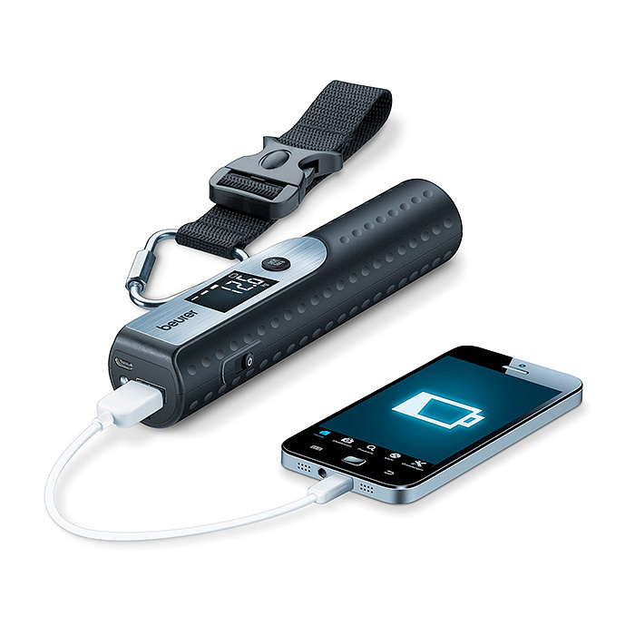 Багажные весы LS 50 совместимы с устройствами с портом USB (смартфоны, MP3-плееры и пр.) Емкость аккумулятора весов 5000 мАч.