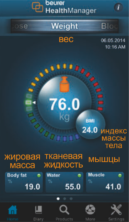 Современная система контроля за состоянием здоровья! С помощью разработанного приложения «beurerHealthManager» мониторинг, анализ и данные о Ваших параметра веса всегда будут под контролем. Язык интерфейса - русский.