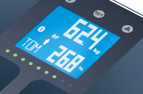 Электронные весы позволяют измерить вес, жир тела, тканевую жидкость, процент мышц, массу костей, а также отобразить калории.