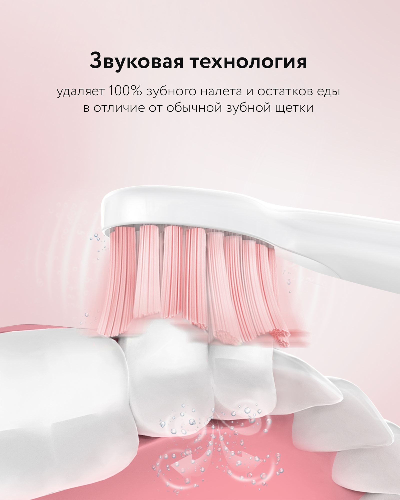 • Устранение мягкого налета. Купить электрическую зубную щетку со звуковой технологией стоит ради формирования во рту мелкодисперсной пены, насыщенной кислородом и эффективно вымывающей мягкие отложения;