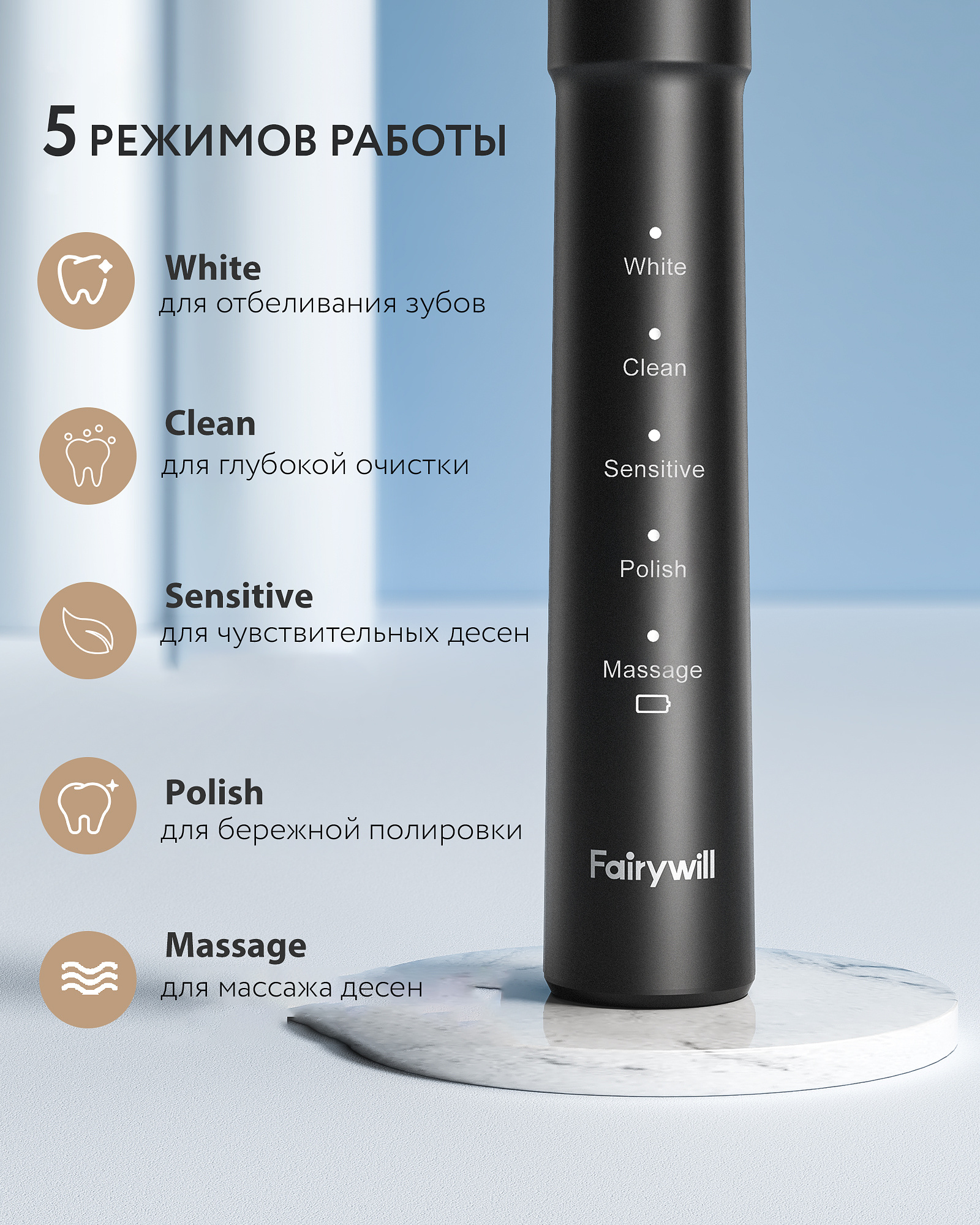 Дополнительные функции электрической зубной щетки Fairywill E11