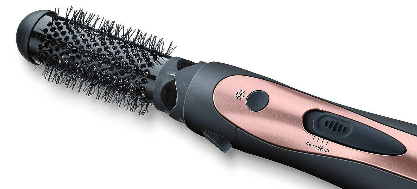 В комплект поставки входят 3 насадки: круглая щетка для создания лёгких мягких волн, термощетка, насадка для стайлинга волос.