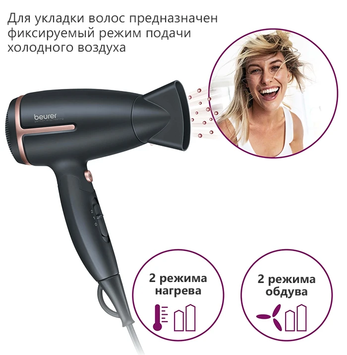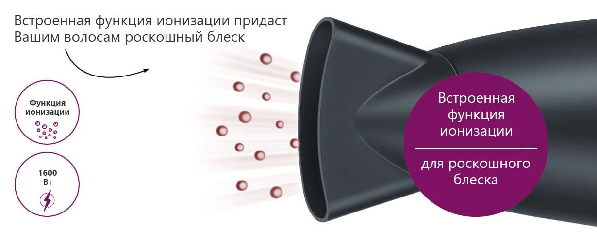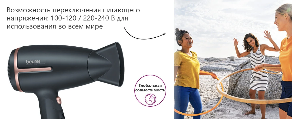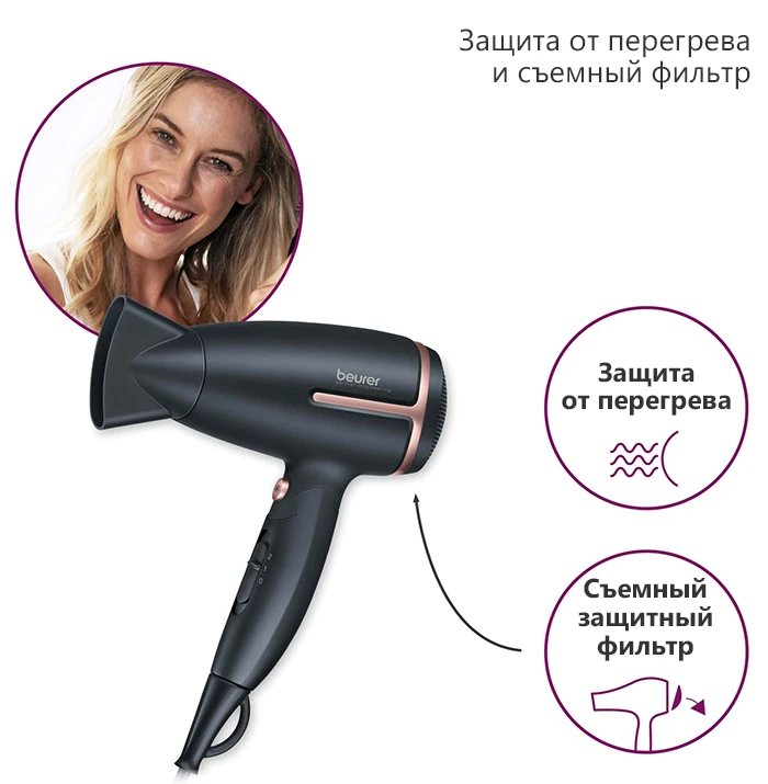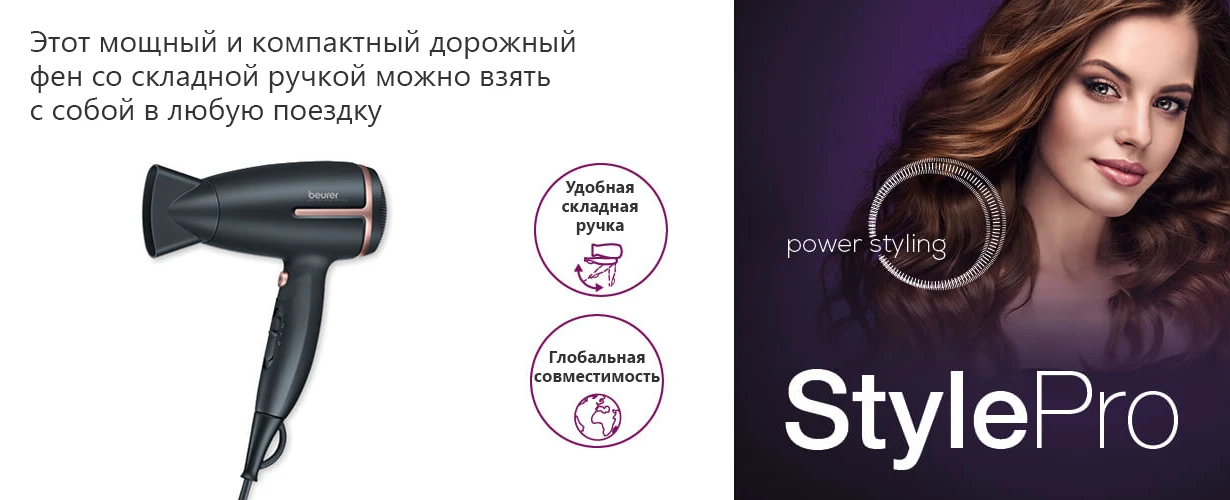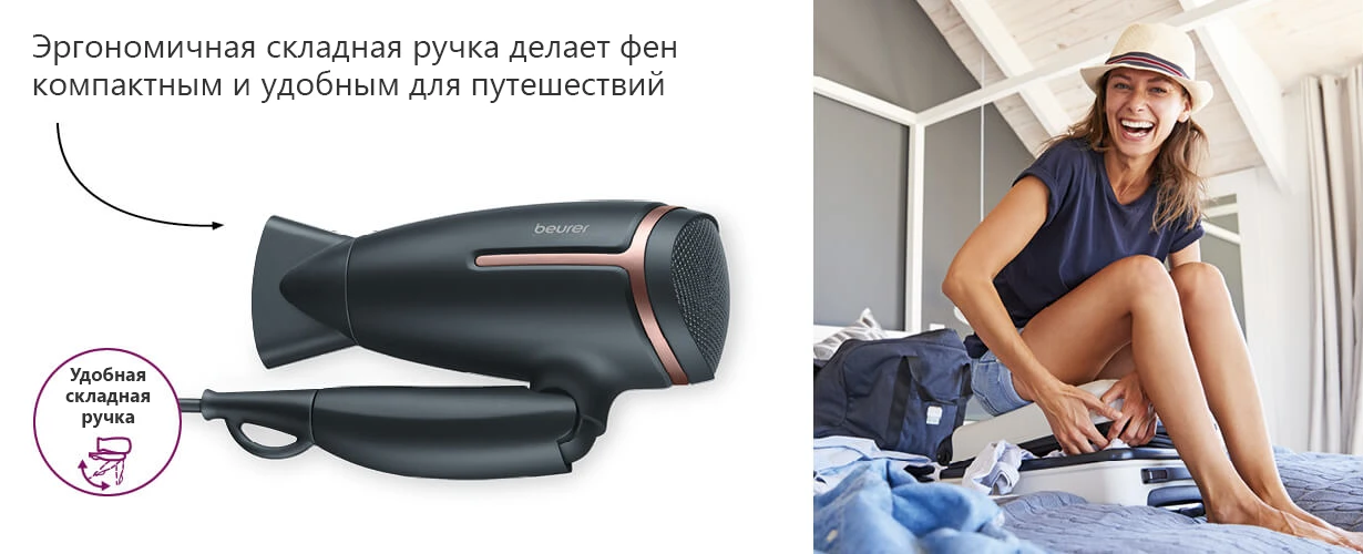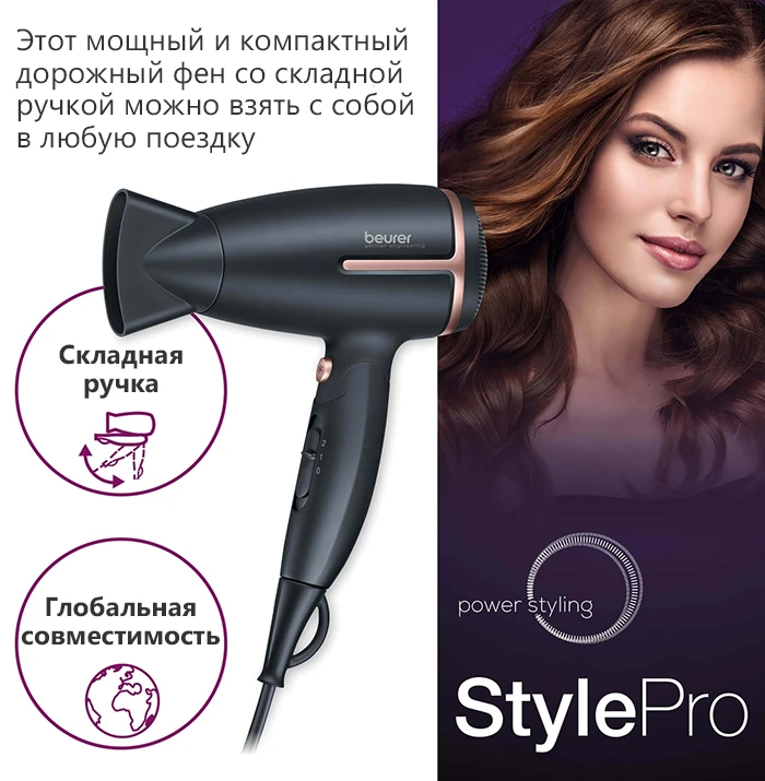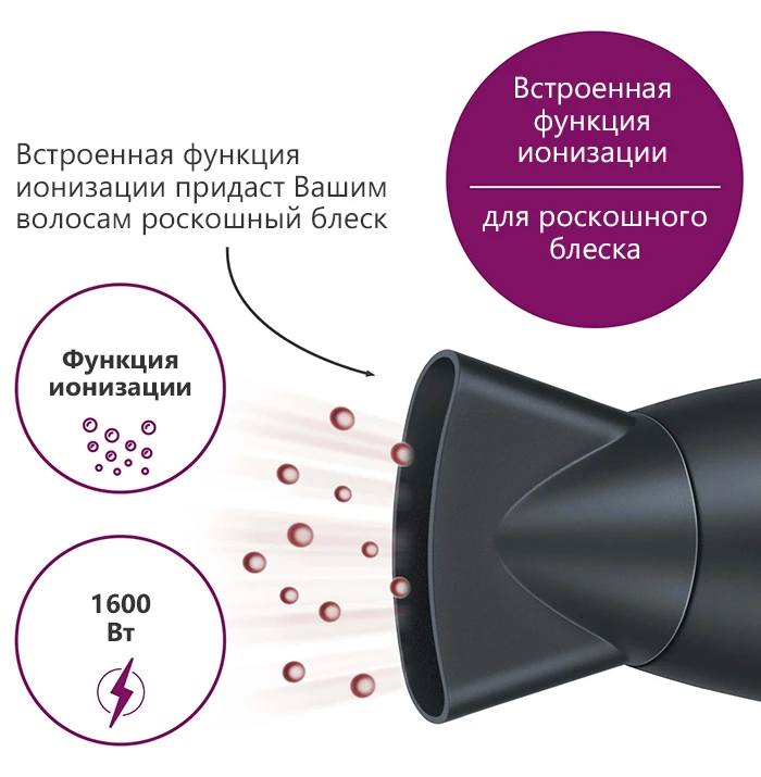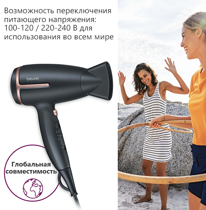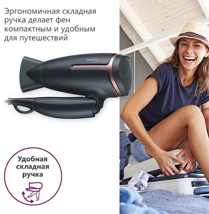 Его хранение и переноска осуществляется без каких-либо сложностей благодаря эргономичной складной ручке, а с возможностью переключения его напряжения вы сможете использовать фен в любой стране, не боясь перенапряжения.