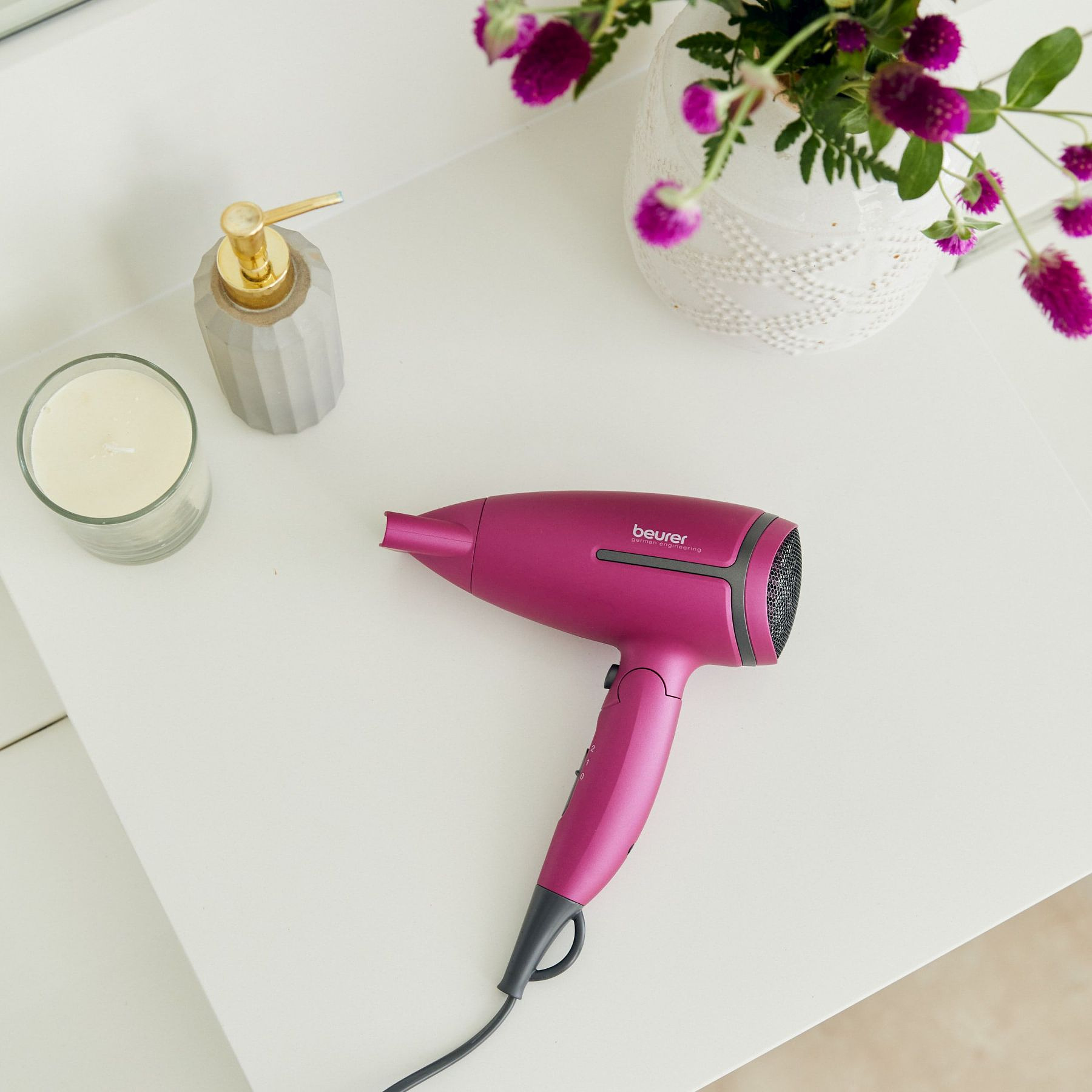 Его хранение и переноска осуществляется без каких-либо сложностей благодаря эргономичной складной ручке, а с возможностью переключения его напряжения вы сможете использовать фен в любой стране, не боясь перенапряжения.