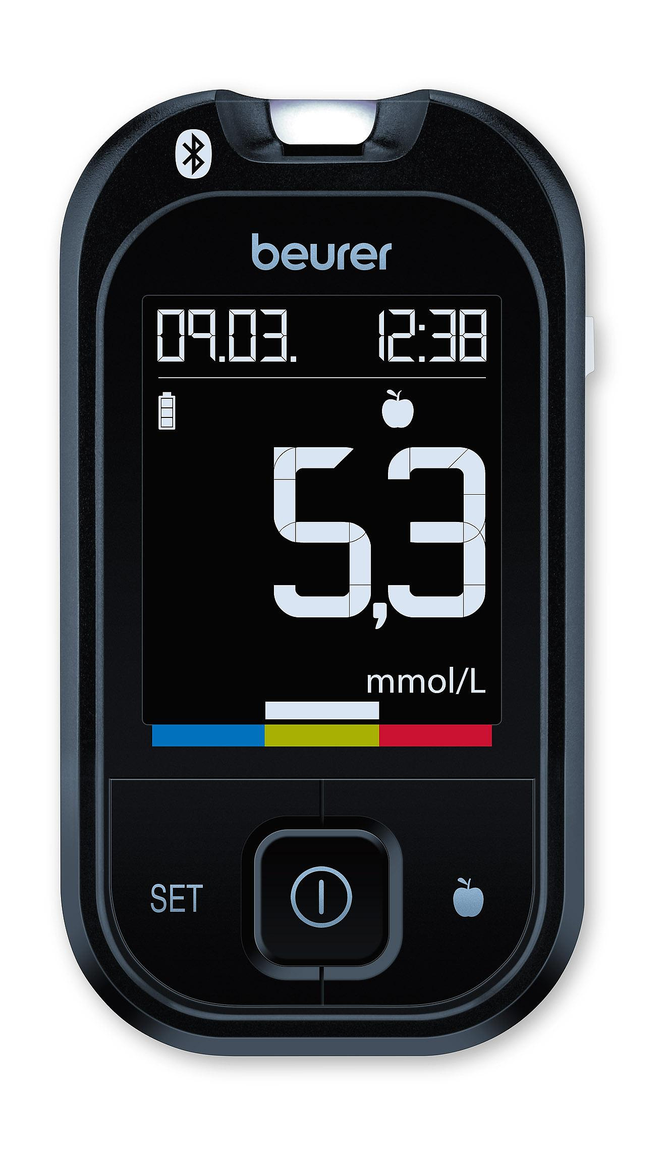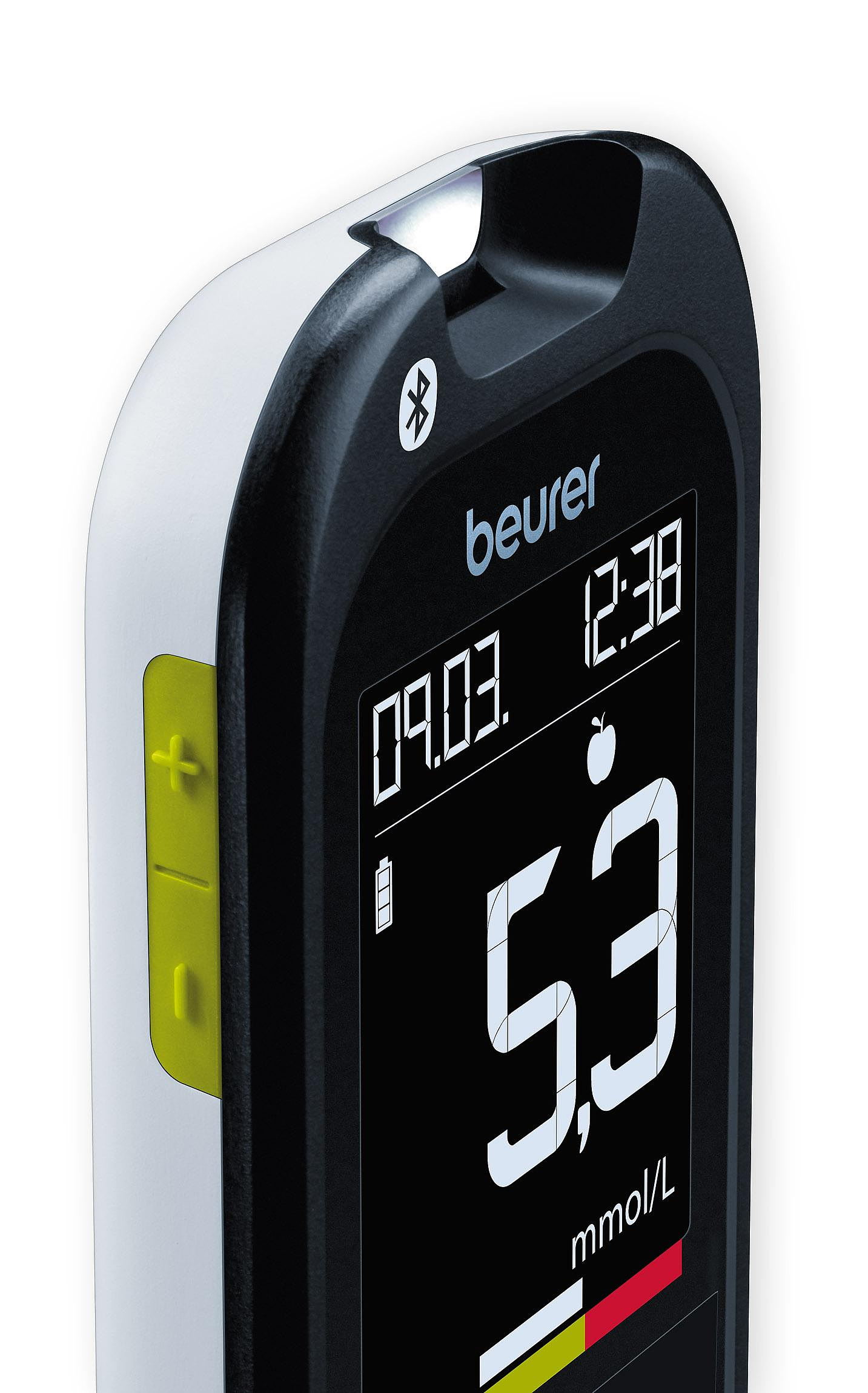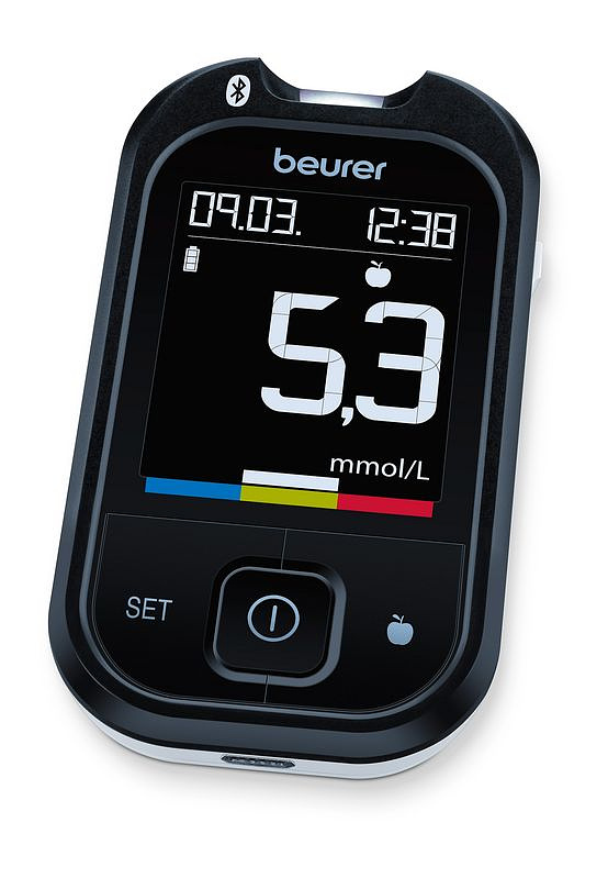 Простое и быстрое измерение сахара в крови: цветная шкала целевого диапазона и индикация на дисплее помогут Вам интерпретировать результаты измерения. Результаты измерений можно передать в бесплатное приложение beurer HealthManager через Bluetooth®.