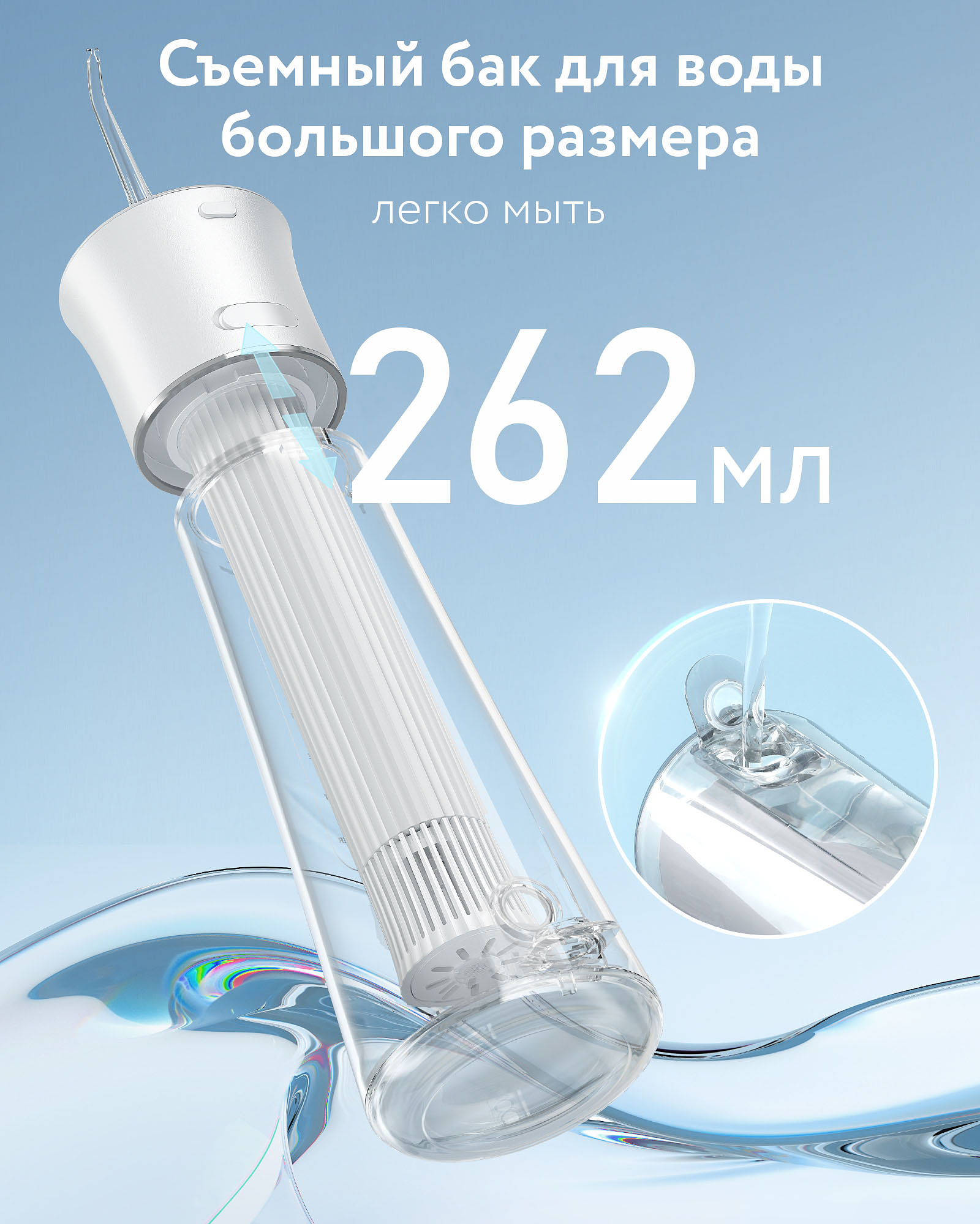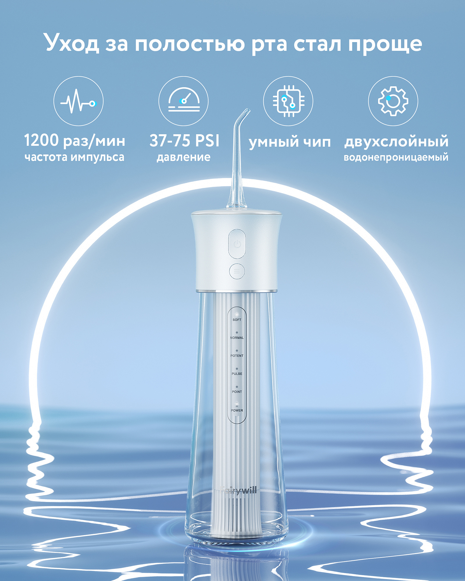 Тонкий, стильный, компактный ирригатор F30 подходит как для мужчин, так и для женщин. Эффективность очистки полости рта обеспечивается большим выбором насадок (6 насадок) и режимов использования (5 режимов). Съемный, легко моющийся резервуар уникальной конструкции объемом 262 мл – максимально комфортное решение.