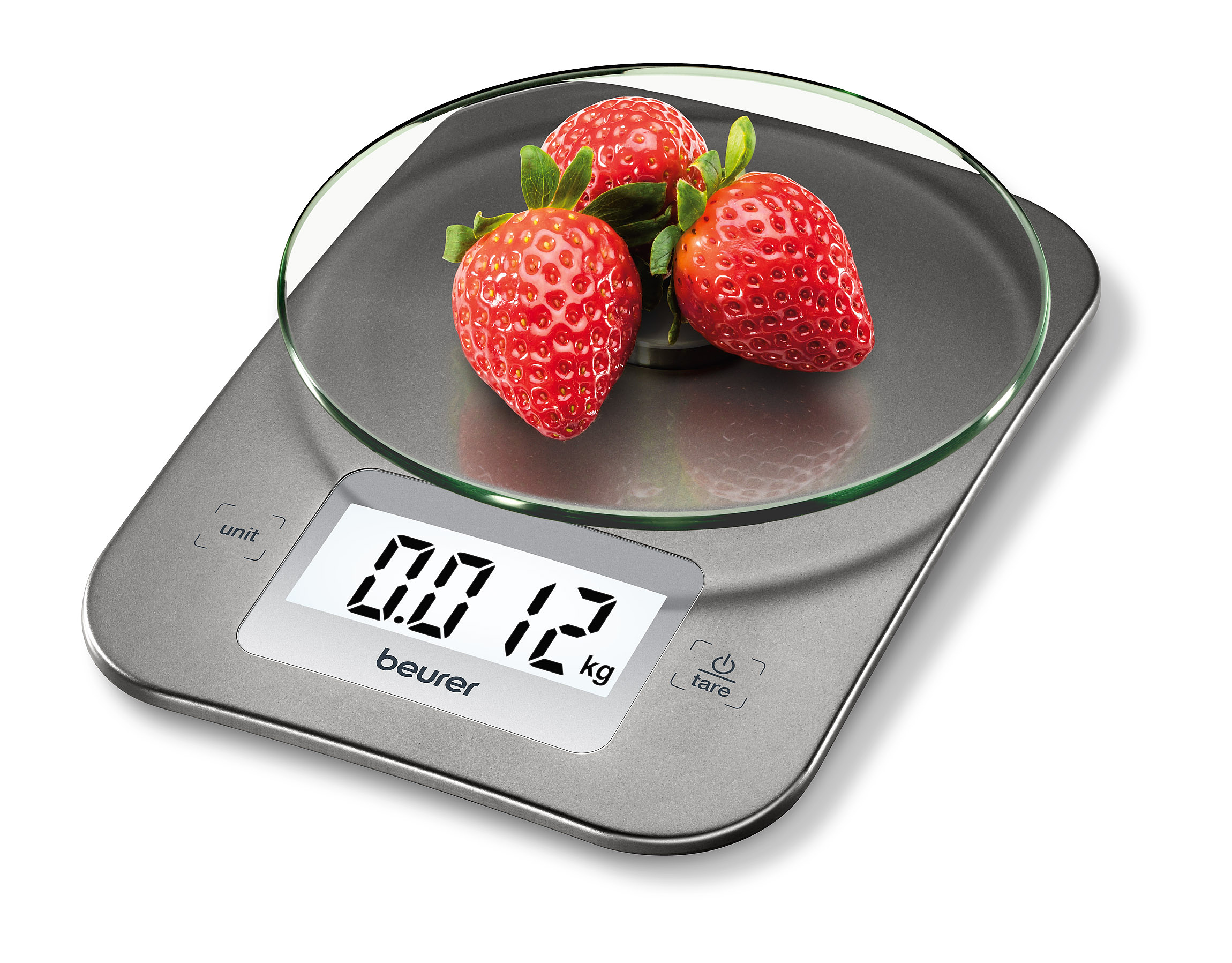 Современные кухонные весы Beurer KS26 с очень большой стеклянной платформой для взвешивания легко очищаются и потому являются идеальным компаньоном на Вашей кухне