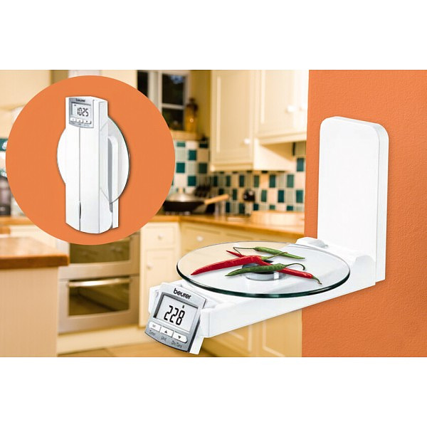 Главной особенностью этих весов является возможность крепления к стене, а благодаря складной платформе