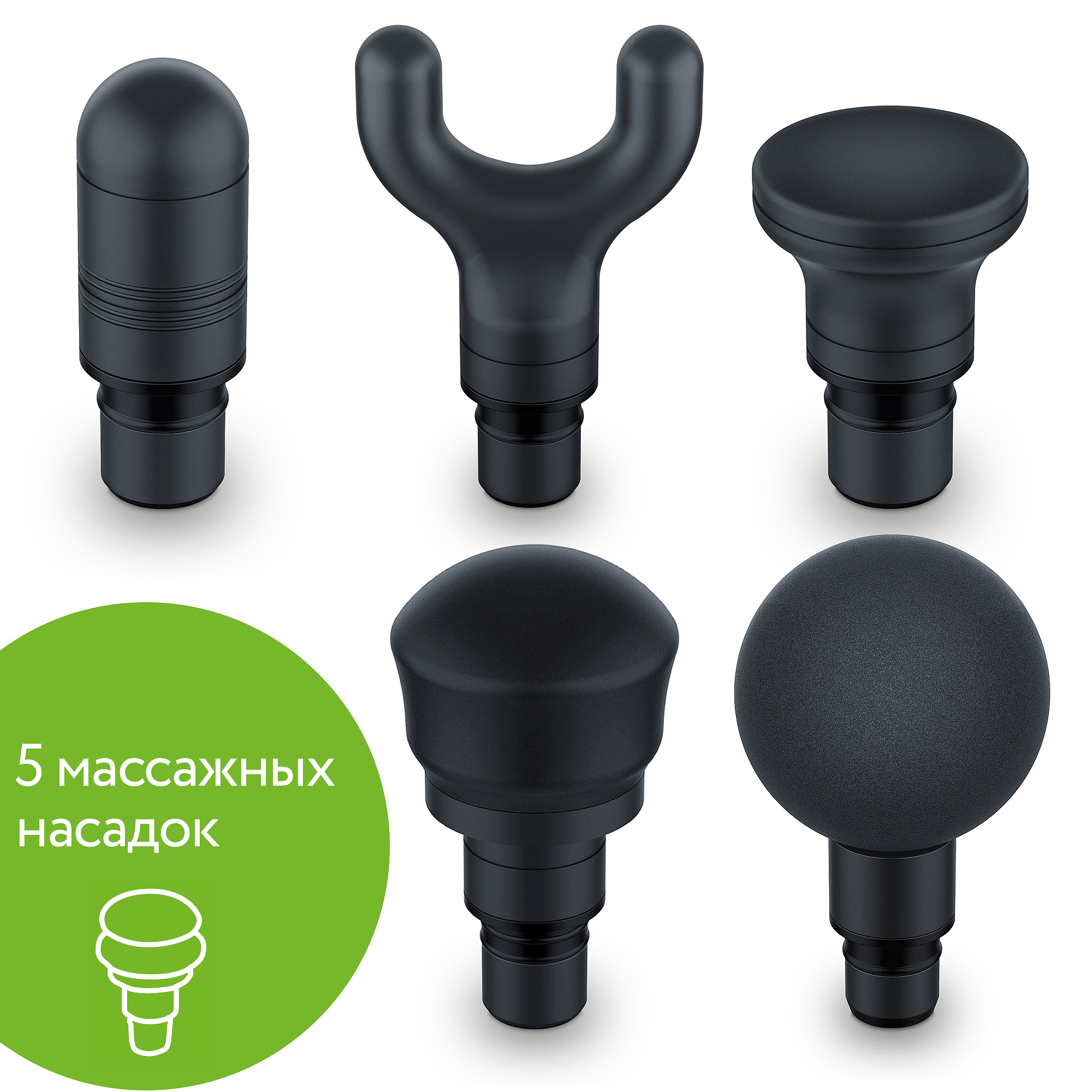 Интенсивный и расслабляющий массаж триггерных точек для снятия напряжения. Стильный массажер Beurer MG185 с пятью насадками можно применять для всего тела. Благодаря мощному литий-ионному аккумулятору массажер работает до 5,5 часов без подзарядки.