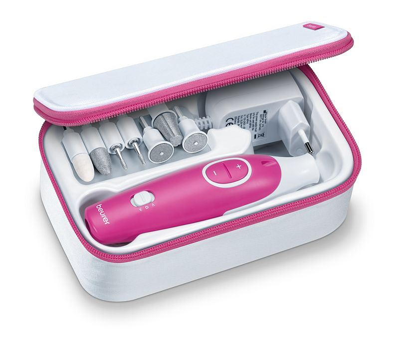 В набор для маникюра и педикюра MP 44 входят 7 высококачественных насадок с долговечным сапфировым покрытием и полировальный фетр.