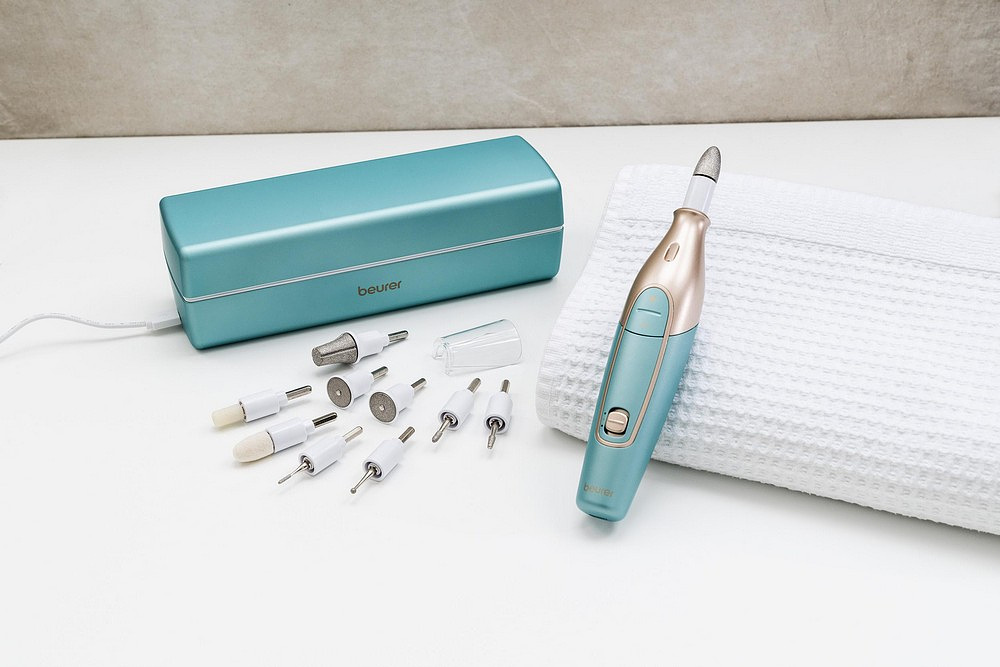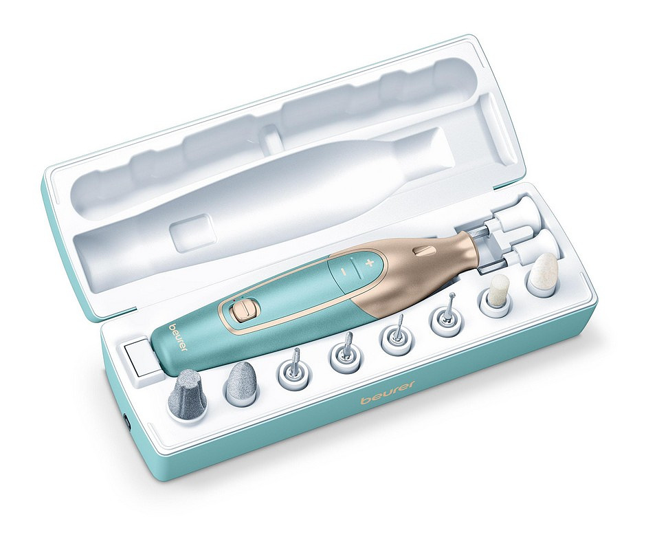 Для красивых и ухоженных рук и ног. Подстригание, подпиливание, полировка ногтей, удаление ороговевшей кожи, кутикулы, а также мозолей и натоптышей — 10 высококачественных насадок для маникюра и педикюра на профессиональном уровне. Практичный футляр для хранения одновременно служит зарядной станцией для маникюрного прибора, а также идеально подходит для поездок.