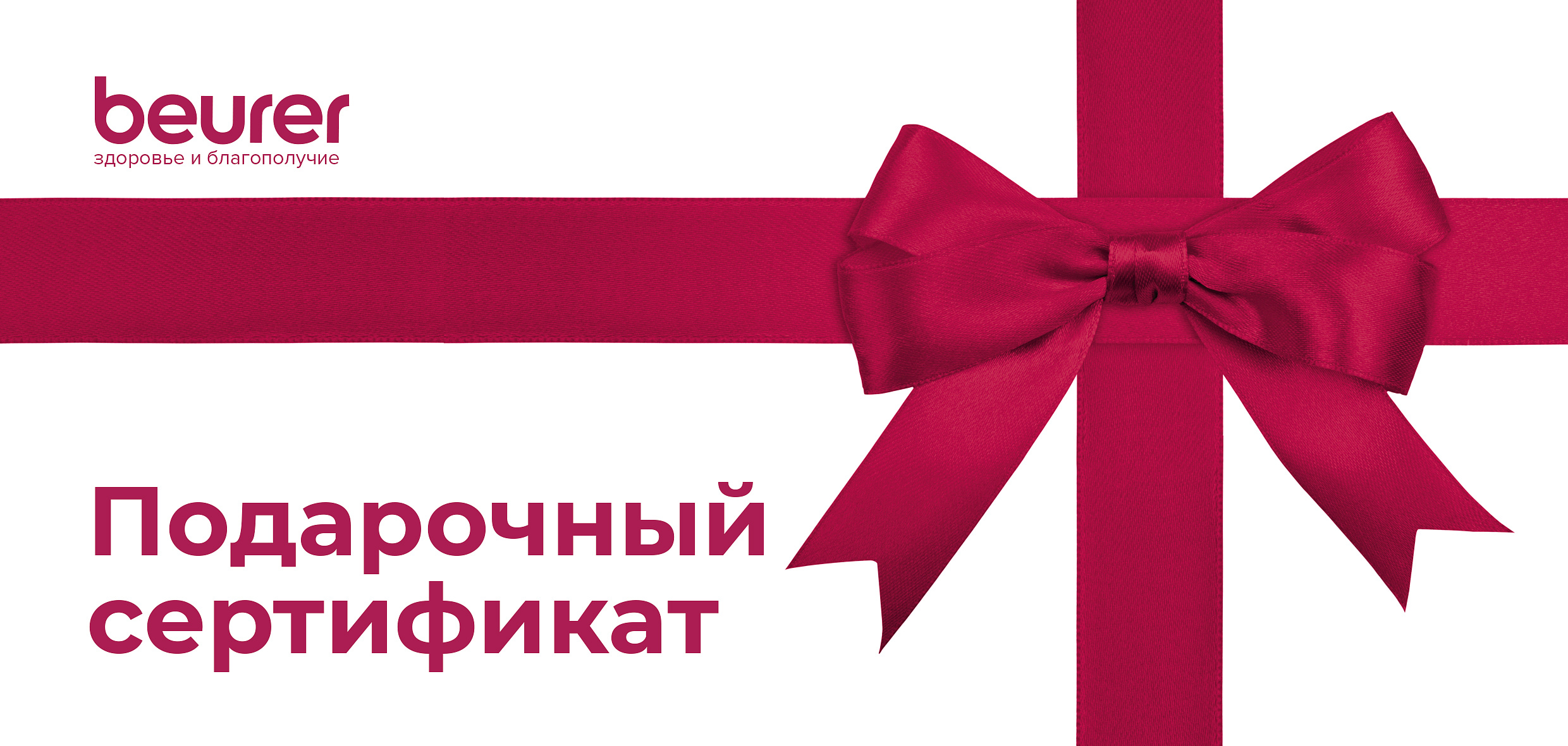 Приобретя и подарив наш подарочный сертификат BEURER, вы можете быть уверены, что подарок будет полезным, ведь с помощью подарочного сертификата можно приобрести любой товар - в вашем распоряжении весь ассортимент продукции марки BEURER.