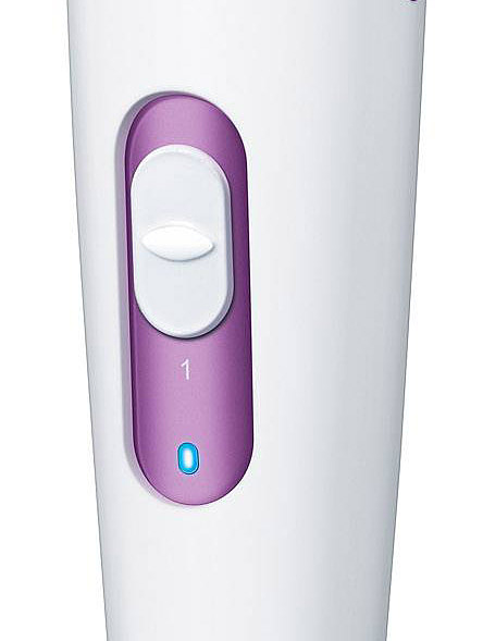 Оснащен 3 высококачественными насадками с сапфировым напылением и 2 уровнями интенсивности для индивидуального подбора к любому типу кожи.