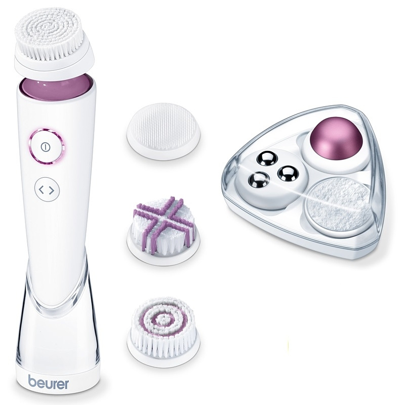 В комплект поставки включены 7 насадок: для всех типов кожи, для чувствительной кожи, для глубокого пиллинга (exfoliation), для глубокого очищения пор, для массажа, для кожи вокруг глаз, хлопковая моющаяся насадка.