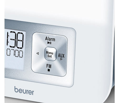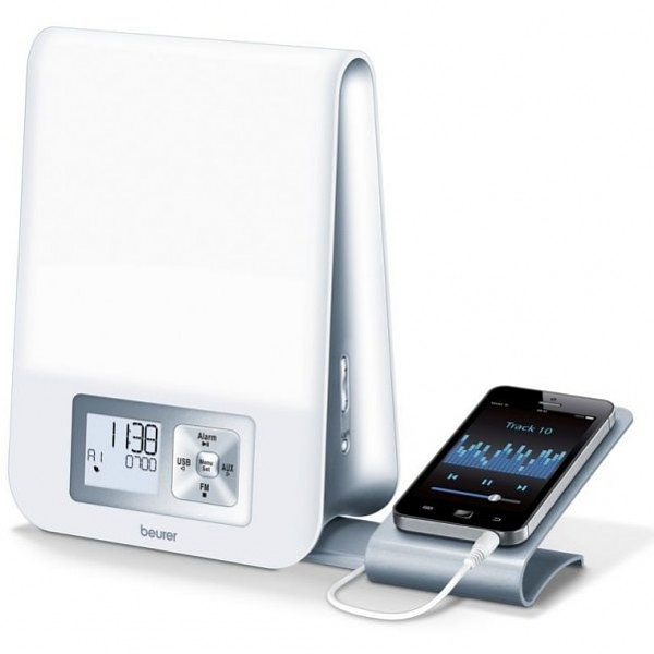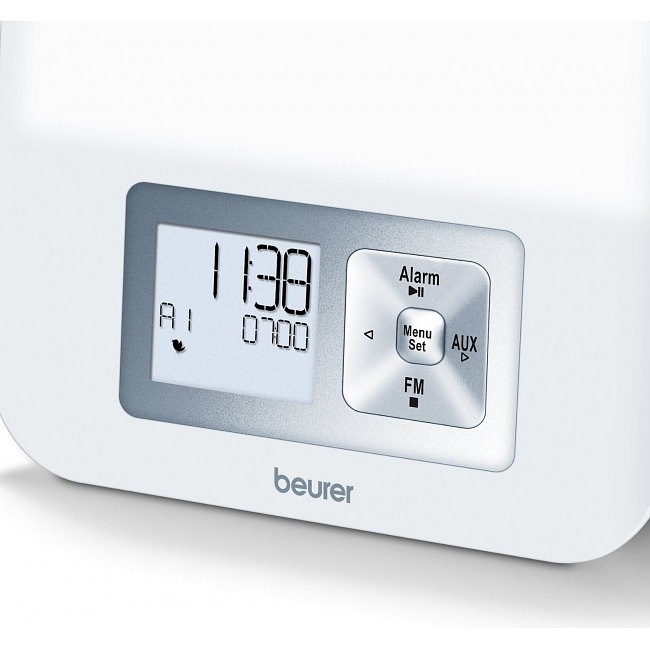 Постепенно возрастающая интенсивность светодиодного освещения имитирует восход солнца. Функция устанавливается за 15 или 30 минут до сигнала, что дает глазам возможность медленно привыкнуть к возрастающей яркости, и в результате организм не подвергается стрессу от резкого пробуждения.