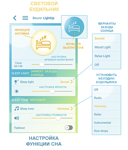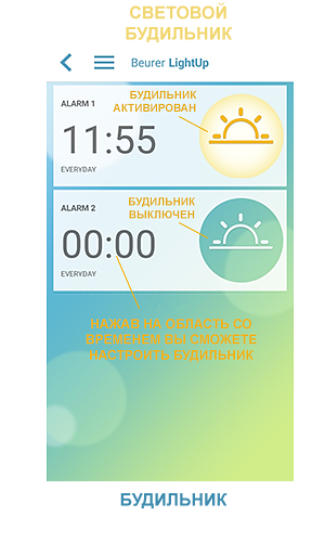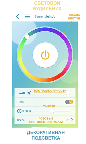*использование или настройка данной функции возможно только при условии подключения к смартфону и установки приложения Beurer LightUp.