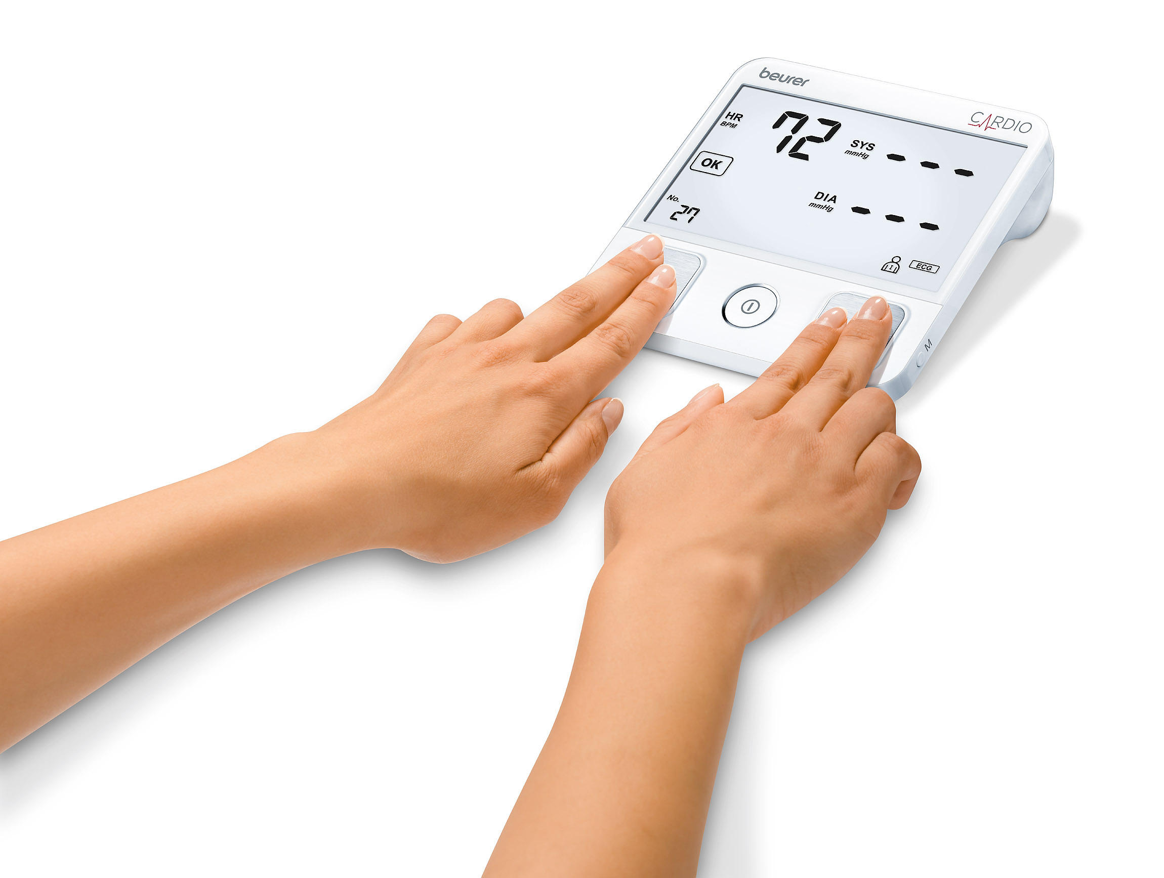 Один прибор — 2 функции: прибор для измерения кровяного давления BM93 дополнительно оснащен пальцевым сенсором ЭКГ, что позволяет не только измерять кровяное давление, но и делать электрокардиограмму.