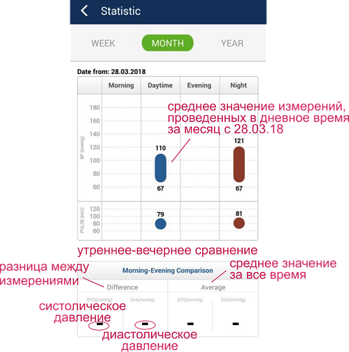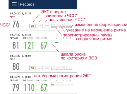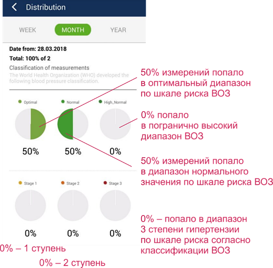 Оценка результатов измерений с помощью шкалы риска артериальной гипертензии согласно классификации ВОЗ (Всемирной организации здравоохранения). В модели ВМ 95 реализовано буквенно-цифровое исполнение шкалы риска артериальной гипертензии.