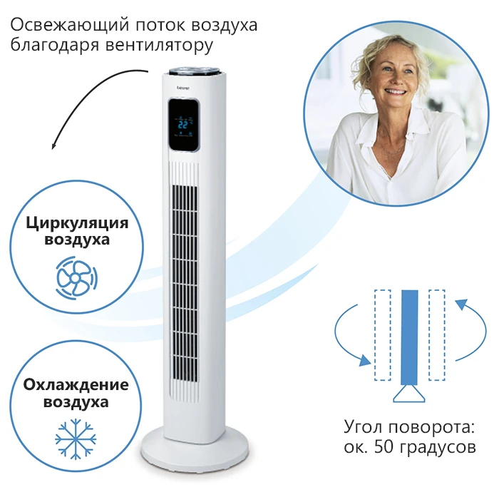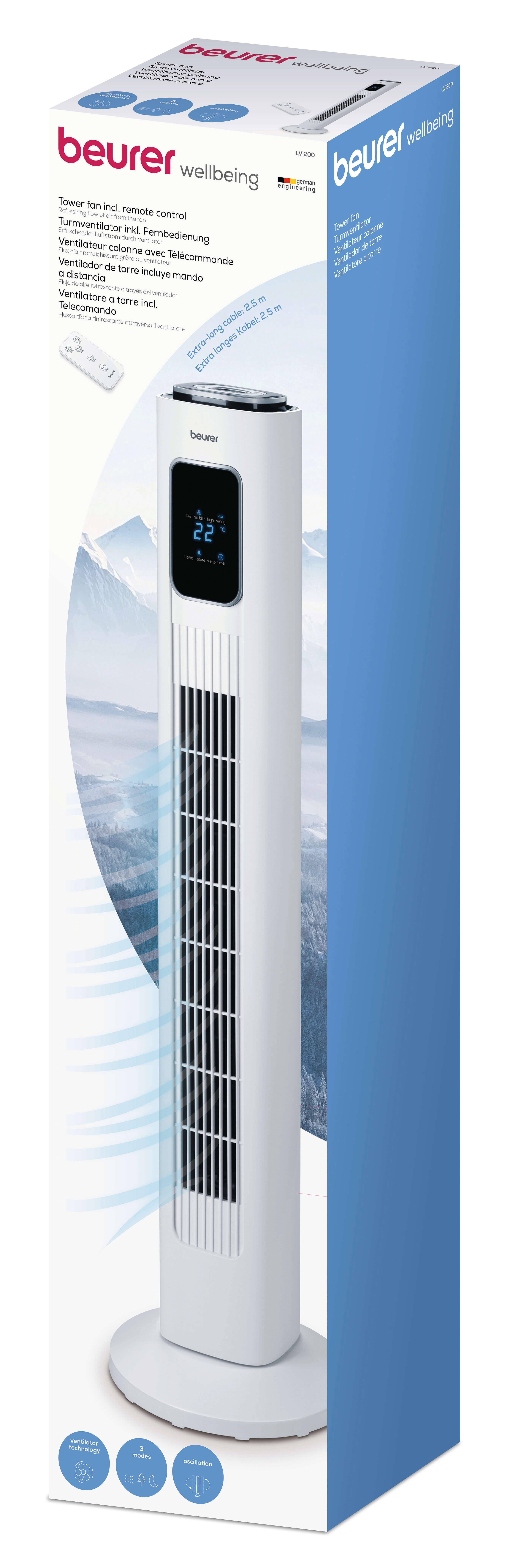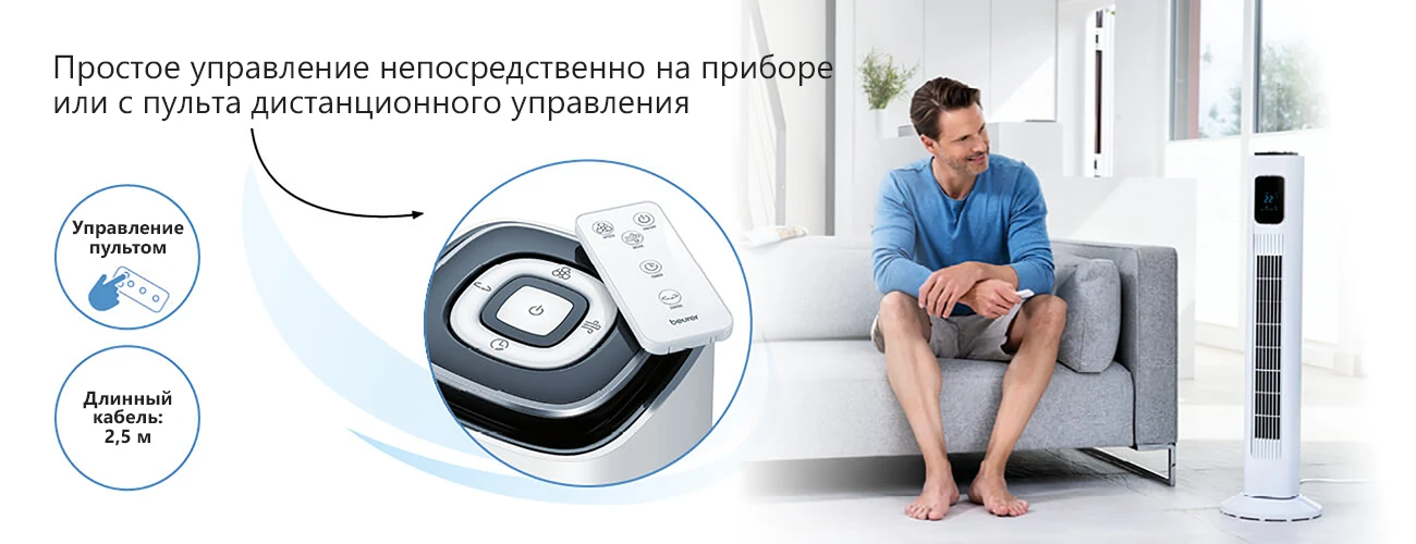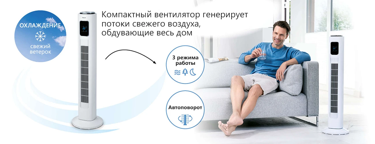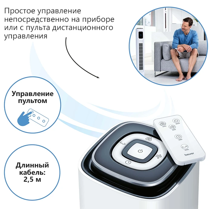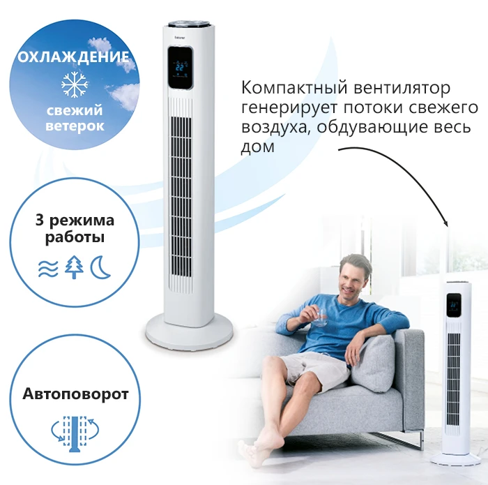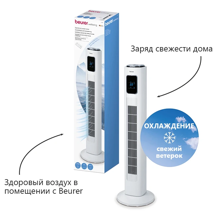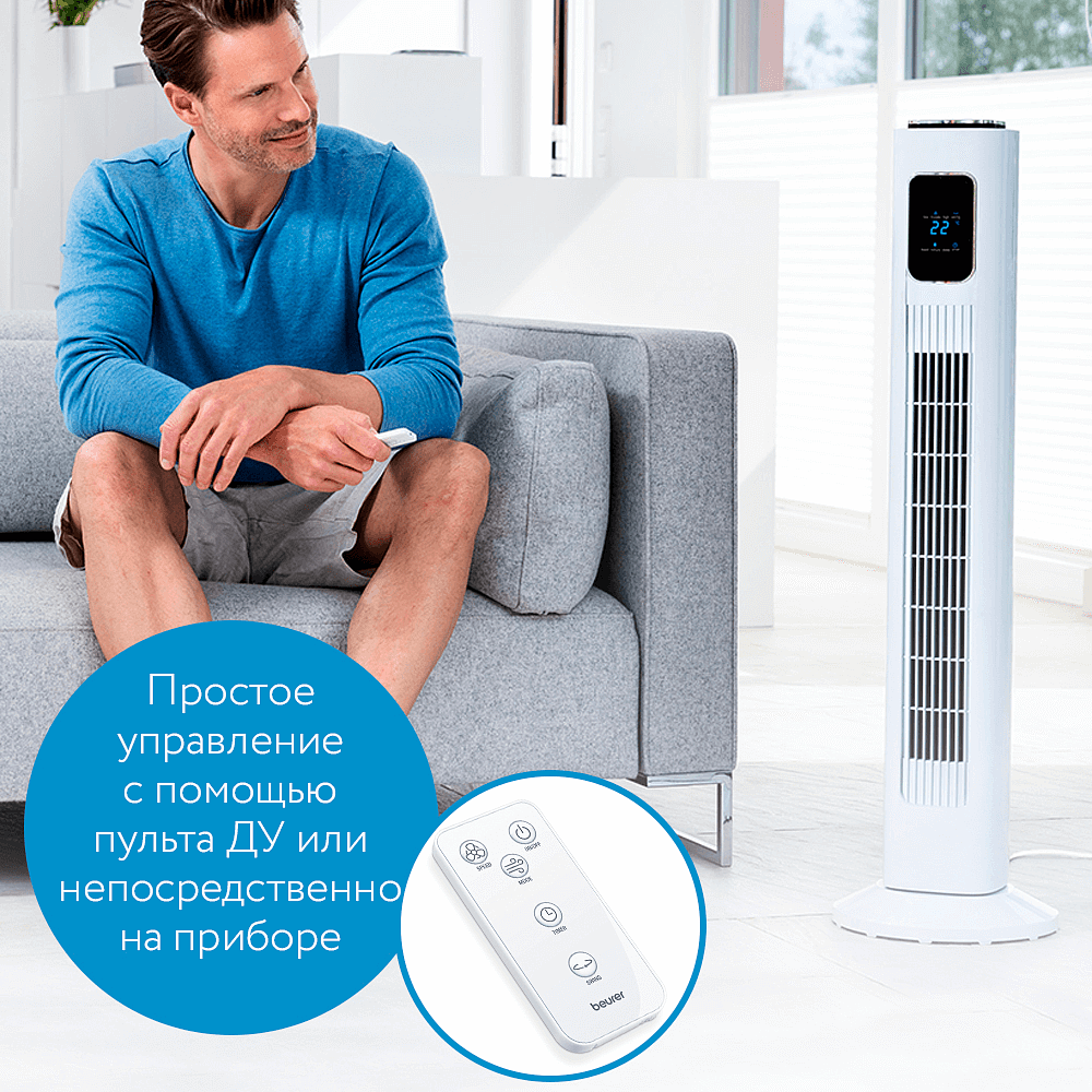 Компактный вентилятор Beurer LV200 в современном дизайне генерирует потоки свежего воздуха, обдувающие весь дом. Дополнительный комфорт обеспечивают индикатор температуры, функция таймера и дистанционное управление.