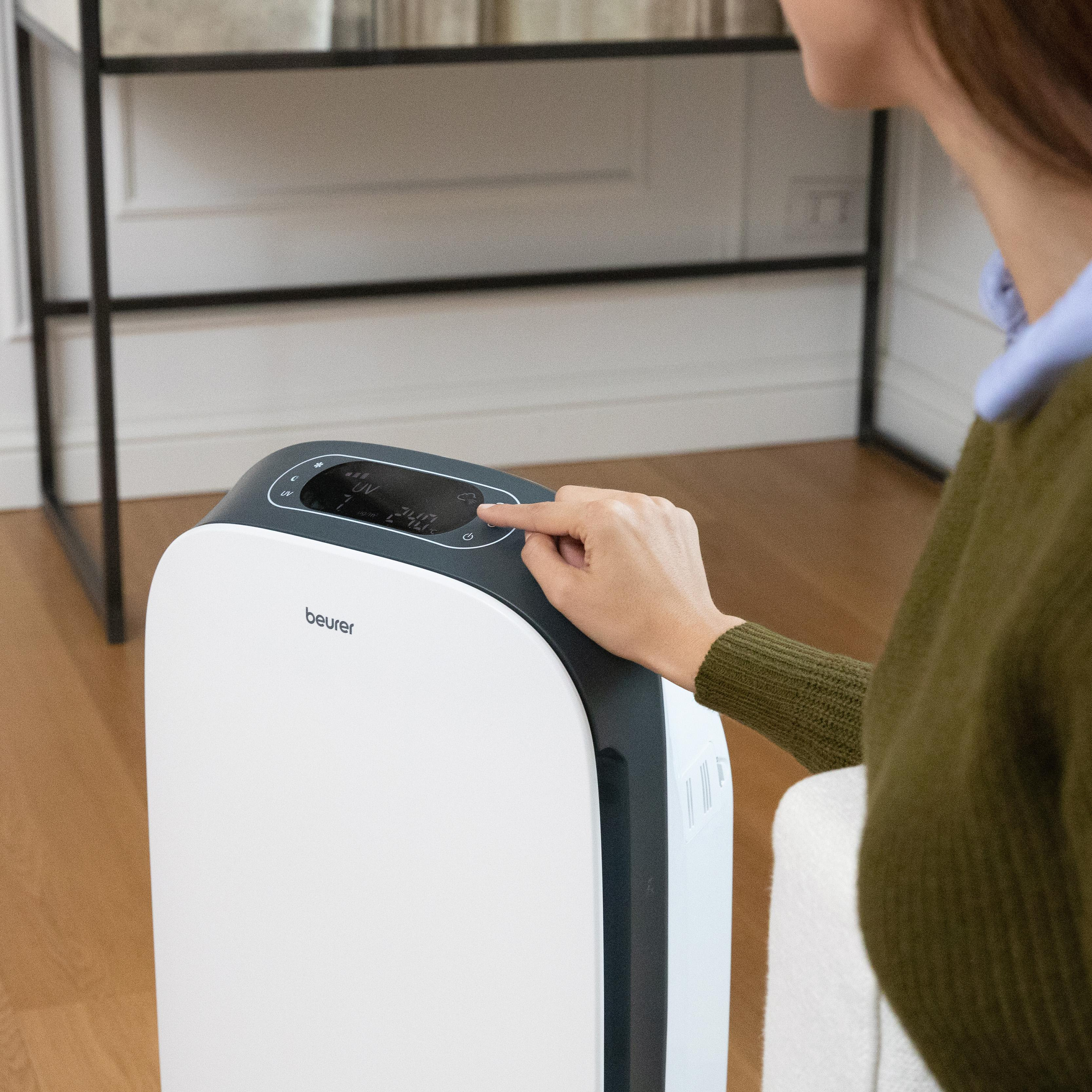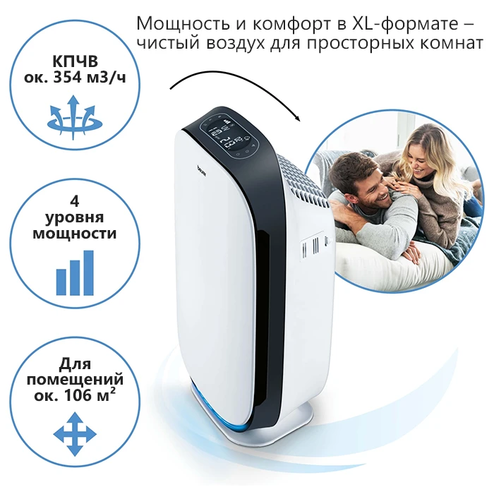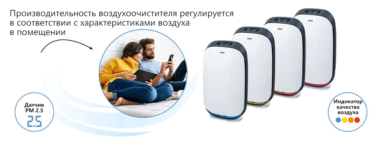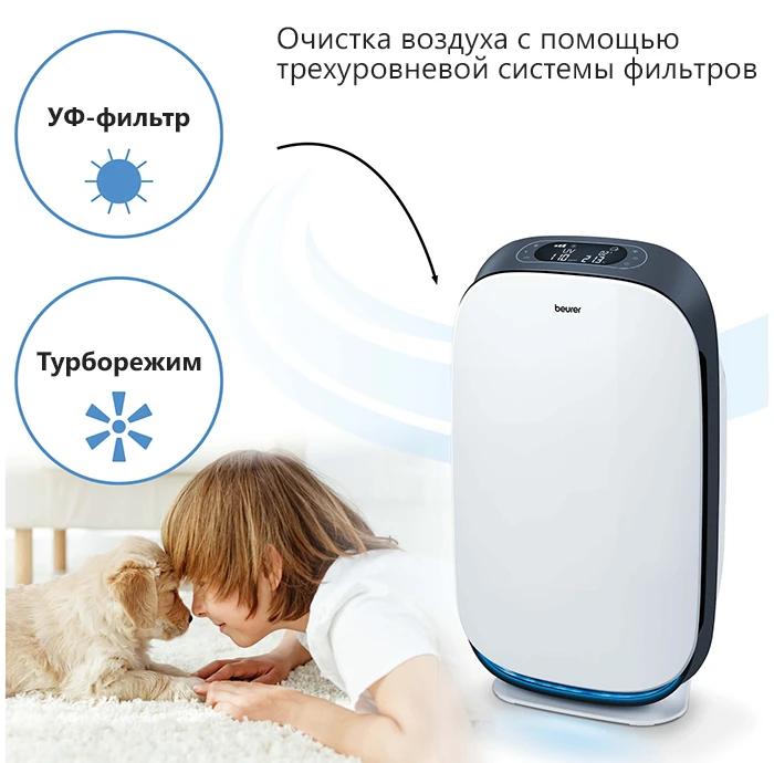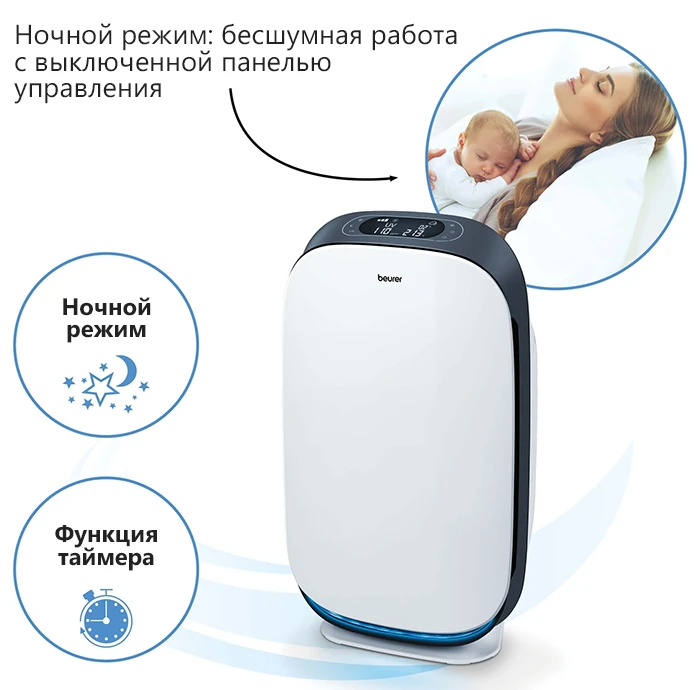 Beurer LR 500 – первый очиститель воздуха, контролируемый мобильным приложением Beurer FreshHome. Оно позволяет легко контролировать качество воздуха в помещении благодаря соединению устройства по Wi-Fi. Аппарат очищает воздух от внутренней пыли, волос животных, запахов, пыльцы, различных бактерий и вирусов, а также вредных газов, которые могут послужить возникновению аллергий и других заболеваний. Очиститель имеет трехслойную систему фильтров, один из которых HEPA 13, способный убирать 99,95% всех вредных частиц.