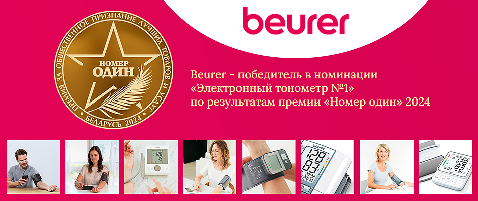 Рады сообщить Вам, что по результатам VIII-ой ежегодной премии «Номер Один», проводимой в Республике Беларусь, на основании оценок потребителей, опытного жюри и оргкомитета бренд «Beurer» одержал победу в категории «Электронный тонометр №1» в 2024 году.